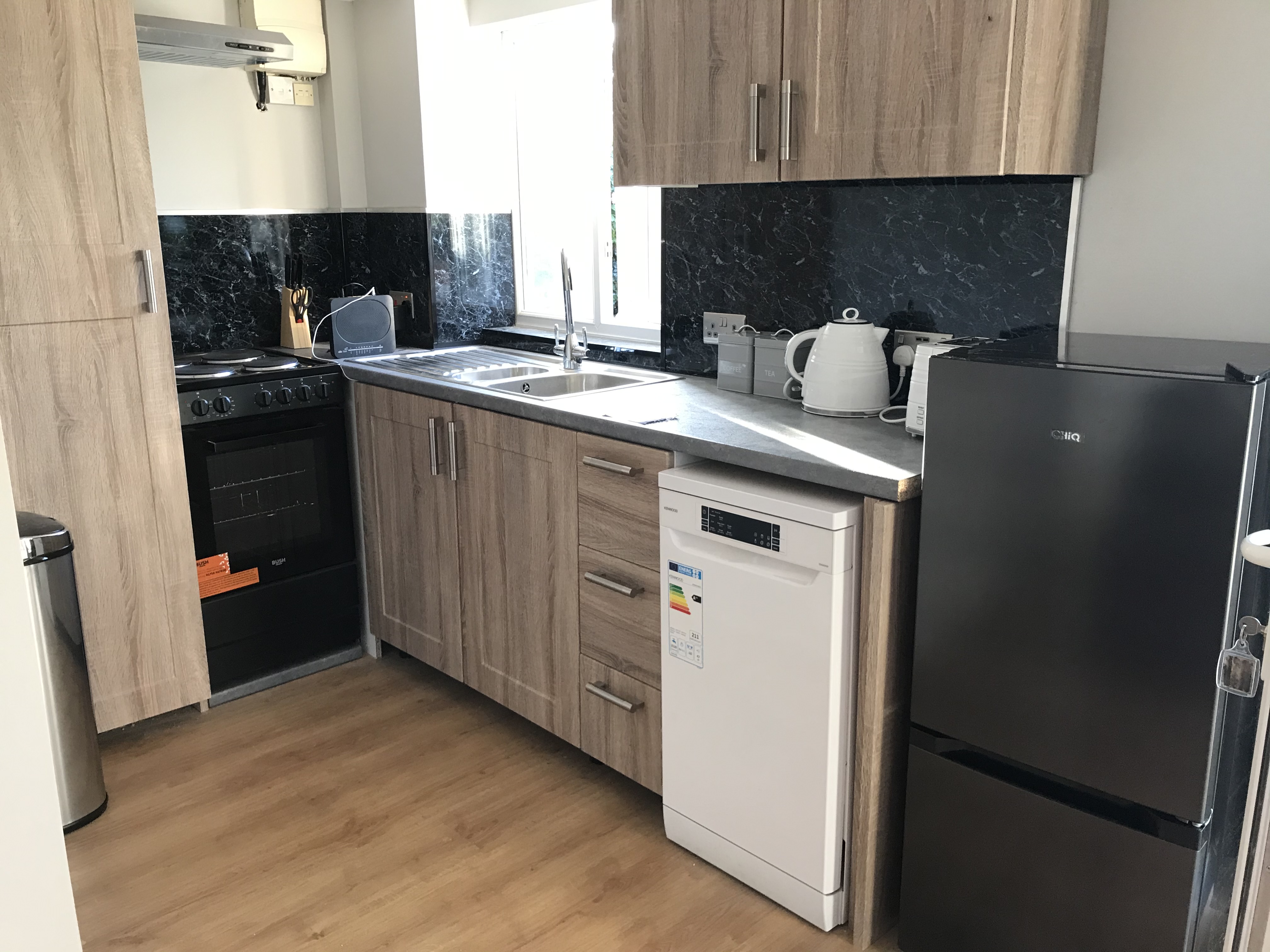 The apartment has a walk in shower in a separate bathroom. It’s handy for those who can’t get in and out of the bath easily & lovely for a refreshing shower after a hot day on the beach.